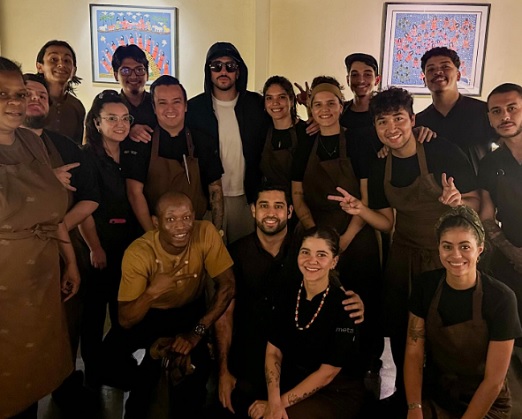 O cantor porto-riquenho Bad Bunny encerrou sua passagem por São Paulo com um jantar no Metzi, em Pinheiros, nesta segunda-feira, 23. O artista e a equipe dele provaram no local pratos do menu degustação de oito etapas, que custa R$ 490 por pessoa. Bad Bunny também tirou fotos com a equipe do restaurante, que é comandado pelos chefs Luana Sabino e Eduardo Ortiz.